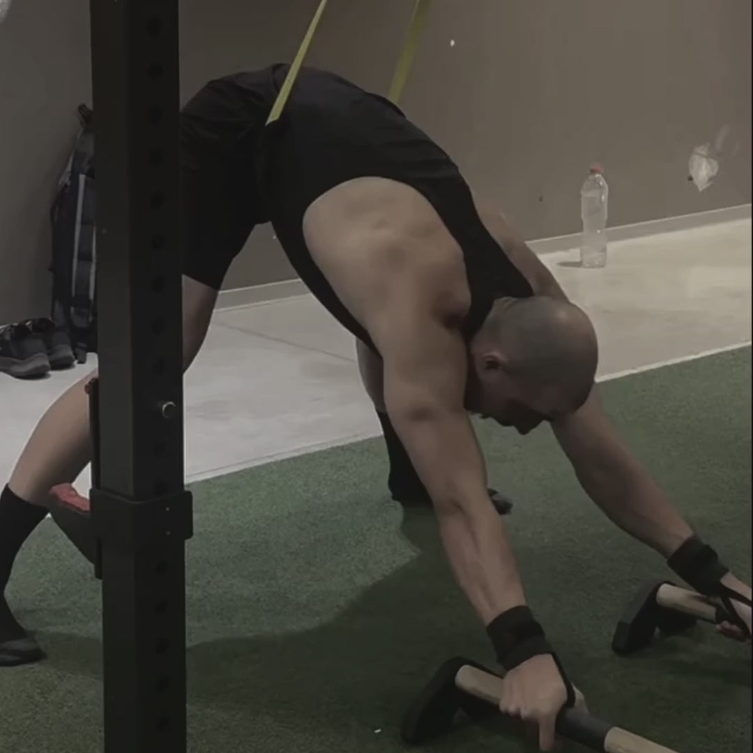 É especialmente oferecido em movimentos como dips , onde o peso do corpo exige estabilidade total do pulso.